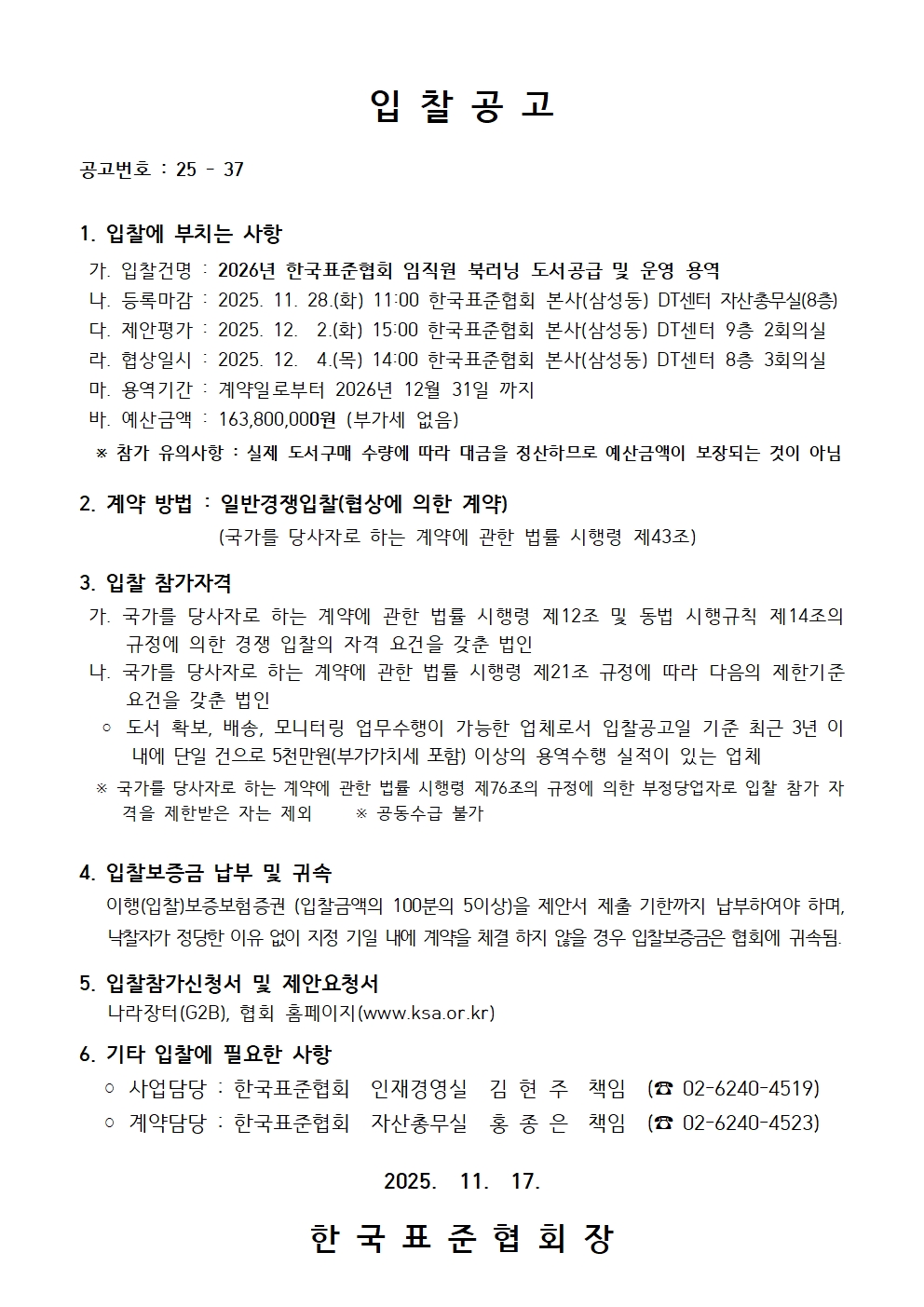 [입찰공고]2026년 한국표준협회 임직원 북러닝 도서공급 및 운영 용역