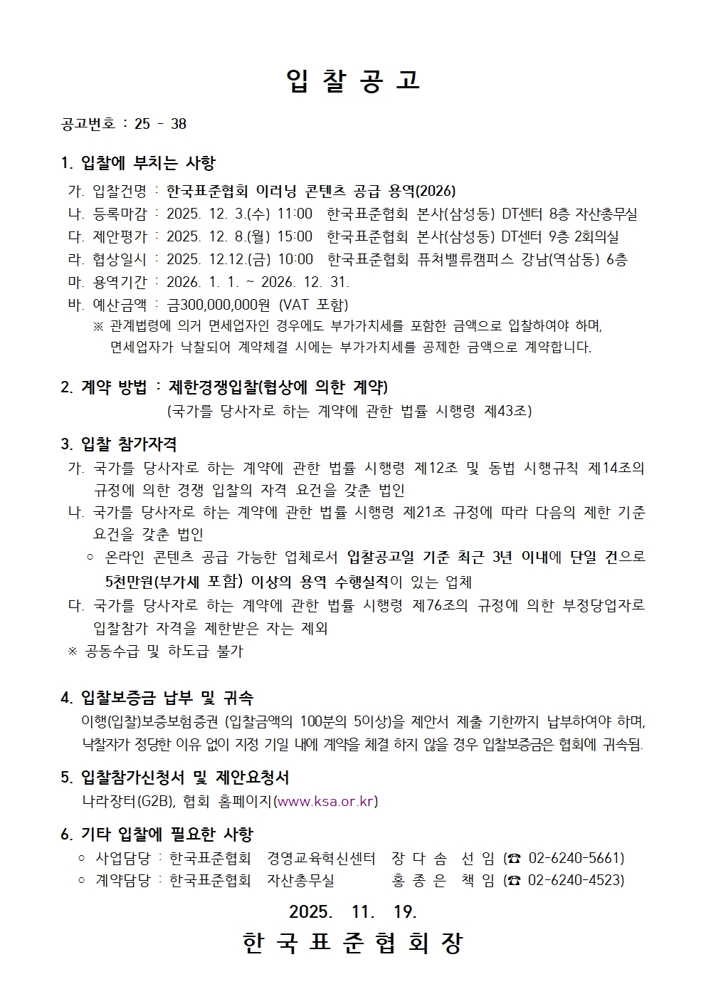 [입찰공고]한국표준협회 이러닝 콘텐츠 공급 용역(2026)