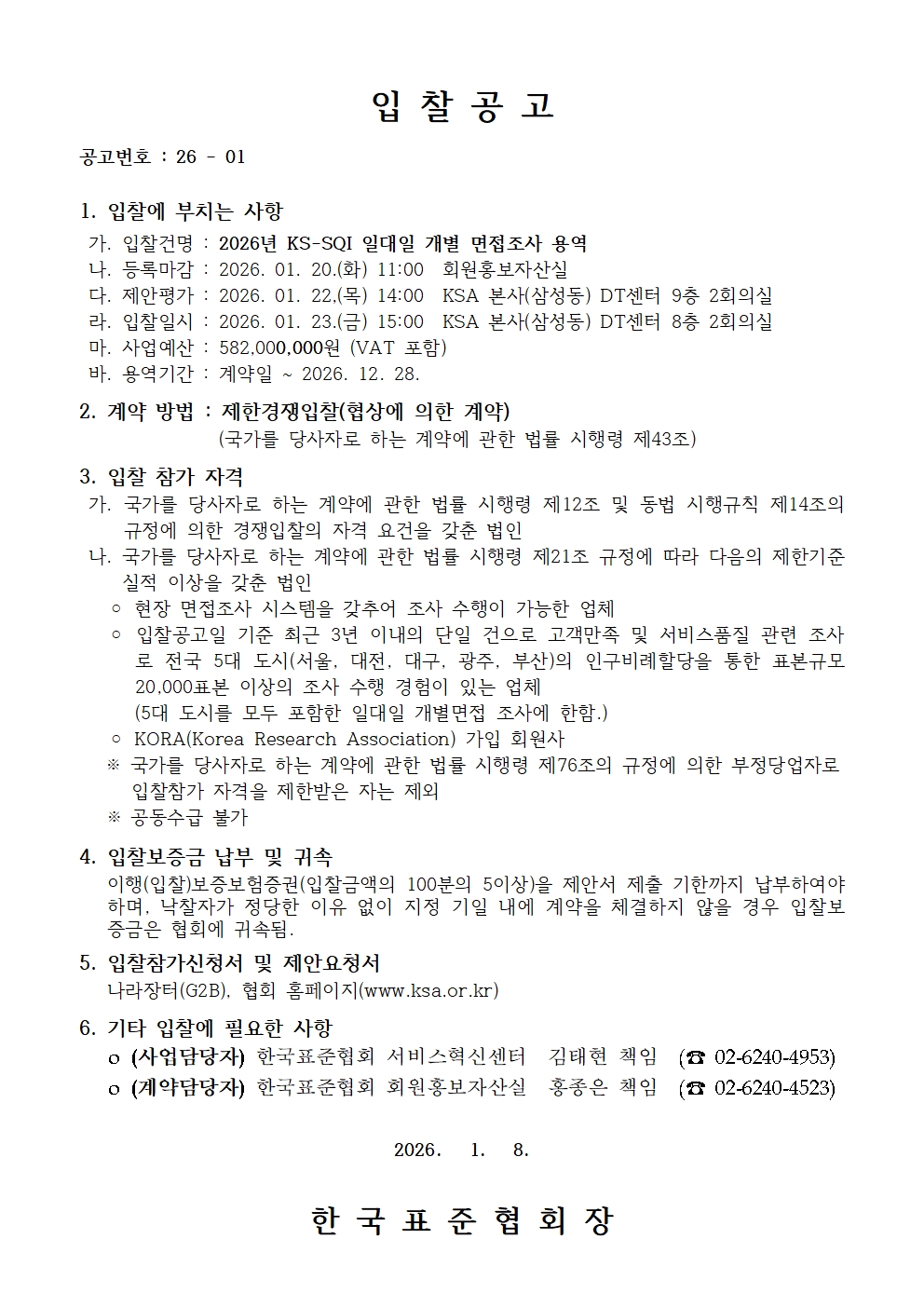 1.입찰공고(안)_2026년 KS-SQI 일대일 개별 면접조사.hwp