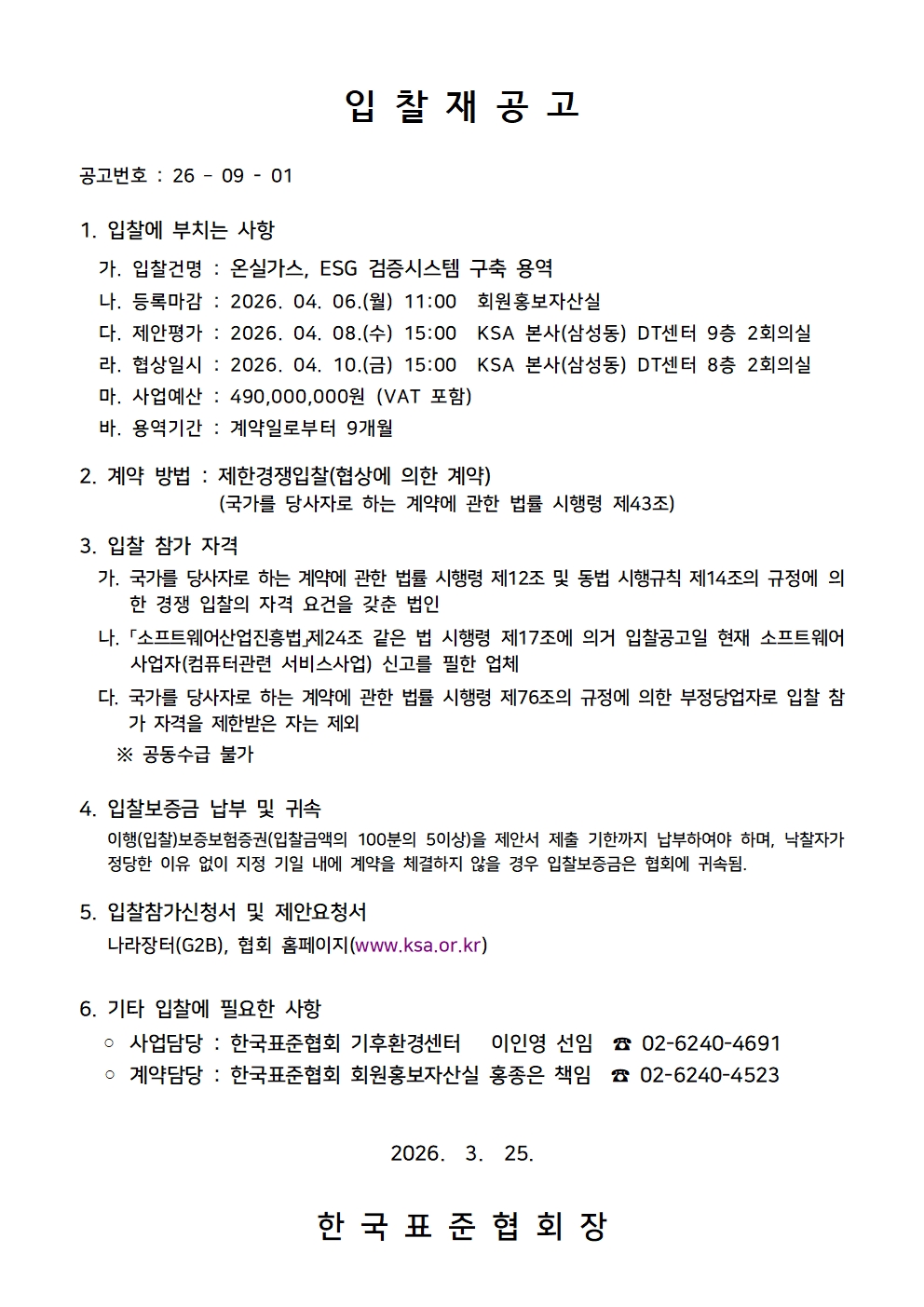 [입찰재공고]온실가스, ESG 검증시스템 구축 용역